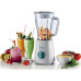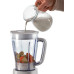 Блендер має ємність мірної склянки 1.5 літра, що дозволяє зручно приготувати достатню кількість суміші для родини або гостей. На додачу він оснащений знімним ножем-подрібнювачем, який полегшує процес очищення та догляд за приладом.