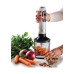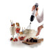 Блендер має компактний та ергономічний дизайн, що забезпечує комфорт у використанні та легкість зберігання. Зручний контроль швидкості дозволяє вибирати оптимальний режим для різних типів продуктів. Прозора склянка забезпечує повний контроль над процесом змішування, а відсутність зайвих деталей полегшує його очищення.