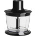 У комплекті практичний подрібнювач об'ємом 500 мл, оснащений власними лезами із нержавіючої сталі. Він легко справляється навіть із твердішими продуктами, тому він підходить для подрібнення м'яса, сиру, овочів, горіхів і навіть може подрібнювати лід.