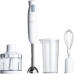 Потужність: 600 Вт; Тип: занурювальний; Кількість швидкостей: 2; Плавне регулювання: ні; Турборежим: так; Комплектація: 4 в 1; Аксесуари: насадка "блендер", вінчик для збивання, мірний стакан (600 мл), чаша подрібнювача (400 мл); Ніж: нержавіюча сталь; Матеріал корпусу: пластик; Колір: білий.