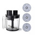 Компактний подрібнювач для зелені, горіхів, м'яса тощоПрикріпіть компактний подрібнювач, щоб нарізати цибулю та зелень, подрібнити горіхи та інше. Чаша об'ємом у 0,5 літра підійде для всіх дрібних завдань, які можуть виникнути під час приготування їжі.