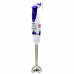 Ручний блендер погружний типу в яскравому біло-фіолетовому стилі. Зручна ергономічна ручка з прогумованими кнопками зберігає і захищає від попадання вологи і утворення іржі. Спеціальна петля дозволяє розмістити пристрій на кухонній території, не займаючи окремого місця в робочому просторі.