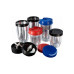 В комплект блендера входить 3 великих (700 мл) і два маленьких (350 мл) ємності, ніж для подрібнення і ніж для змішування, 2 кільця для губ, 2 зручні кришечки для вживання на ходу, 2 кришечки для зберігання і одну шейкер-кришечка.