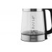 Для комфортного використання є зручна ручка з клавішею відкриття кришки. За включення відповідає окрема клавіша, розташована в нижній частині чайника. Довжина дроту підставки складає 80 см. Робота чайника супроводжується LED-підсвіткою синього кольору. Нагрівальний елемент – прихований. Його ефективне розташування разом з потужністю у 2150 Вт забезпечує швидке досягнення заданої температури. За надійний захист від перегріву та автоматичне відключення при відсутності води відповідає контролер Strix. Його ресурс – до 12 000 робочих циклів, що дорівнює 10 рокам інтенсивного використання приладу.