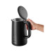 Чайник має кнопку для швидкого та зручного відкривання кришки одним натисненням, що підвищує комфорт під час наповнення водою. Гладке дно зі схованим нагрівальним елементом запобігає накопиченню забруднень. Зручна поворотна основа на 360 градусів з відсіком для зберігання надлишкового кабелю дозволяє ставити чайник під будь-яким кутом.