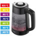 Електрочайник із регулюванням температури Concept RK4195 оснащений електронним керуванням із можливістю налаштування 7 рівнів температури, що дозволяє приготувати все – від дитячих сумішей до різних видів чаю. Він вирізняється сучасним дизайном із тонованого скла та нержавіючої сталі, а кольорове підсвічування змінюється залежно від температури води.