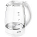 Матеріал корпусу з термостійкого скла додає чарівності та елегантності, роблячи його чудовим елементом будь-якої кухні. Стійкість до високих температур гарантує довговічність та надійність роботи, а підсвічування корпусу додає особливий акцент, перетворюючи прилад у справжній витвір мистецтва під час кипіння води.