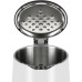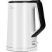 Чайник виконано в білому кольорі, що надає йому охайного та універсального вигляду — він легко впишеться в інтер’єр будь-якої кухні. Корпус встановлюється на круглу підставку з можливістю обертання на 360 градусів, тому ним однаково зручно користуватися як правшам, так і шульгам. Незнімна кришка запобігає випадковому розливу води, а вбудований відсік для кабелю дозволяє акуратно сховати шнур і підтримувати порядок на робочій поверхні.