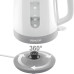 Електрочайник потужністю 2200 Вт об'ємом 1 л. Корпус виготовлений із пластику. Оснащений автоматичним відключенням, блокуванням включення без води, фільтром проти накипу, функцією обертання на 360 °.