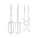 Крім самого віночка, у комплекті ви знайдете необхідні аксесуари. 2 віночки ідеально підходять для збивання тіста, яєчних білків, збитих вершків, майонезу та пюре, а також для змішування/збивання соусів та заварного крему. 2 насадки для замішування стануть у нагоді вам при приготуванні дріжджового або повітряного тіста, картопляного тіста для пельменів і тіста для картопляних оладок. Усі насадки легко замінюються за допомогою практичної кнопки для зняття віночків або гаків.