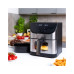 Хочете швидко приготувати смачне блюдо для всієї родини? Кошик у фритюрниці знежиреної ємкістю 6 л дозволяє готувати більше страв одночасно. Це особливо корисно під час приготування їжі для великої групи людей або організації вечірок. Великий кошик також дозволяє готувати більші шматки м'яса, овочів або інших інгредієнтів нестандартних розмірів. Вам не доведеться турбуватися про те, що ваша їжа підгорить, внутрішня частина кошика покрита антипригарним покриттям, що також полегшує очищення. Ви можете стежити за всім процесом приготування завдяки віконцю, розміщеному в кошику, і освітленій внутрішній частині. У комплект також входить форма для запікання з ручкою об'ємом 2.3 л.