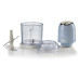 2 швидкості, які можна активувати за допомогою двох кнопок, розташованих у верхній частині пристрою, дають змогу подрібнювати або дрібно нарізати продукти, а нековзкі ніжки - забезпечують максимальне зчеплення продукту з робочою поверхнею.