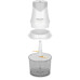 Подрібнювач потужністю 400 Вт із пластиковою чашею об’ємом 1 л. Оснащений двома швидкостями та додатковим режимом збивання. Насадки виготовлені з нержавіючої сталі.