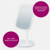 Косметичне дзеркало Beurer BS 47 оснащене великою дзеркальною поверхнею 15 × 21 см та 33 LED-лампами, які забезпечують рівномірне освітлення без тіней. Три режими підсвітки — теплий, холодний та природний — допомагають комфортно виконувати макіяж і доглядові процедури. Сенсорне керування дає змогу плавно регулювати яскравість. Магнітне кріплення дозволяє обертати, нахиляти або знімати дзеркало залежно від потреб. Автономна робота до 3 годин, зарядка через USB-C. Підставка має практичний лоток для зберігання дрібних аксесуарів.