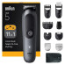 Тример для бороди, волосся на голові, для тіла. Два регульованих гребня (на 3-11 мм і на 13-21 мм). Дві насадки на 1 і 2 мм. Точна насадка для деталізації. Насадка для чутливих ділянок тіла. Насадка для брів. Насадка міні-бритва. Додаткове змінне лезо для тіла. Тример оснащений 14-ма параметрами довжини з кроком 2 мм. Живлення: від Li-ion акумулятора. Час роботи від акумулятора 120 хв. Час зарядки 90 хв. LED індикатор стану акумулятора. Швидка зарядка за 5 хв. Зарядний пристрій адаптується під напругу мережі будь-якої країни світу. Самозаточуючі ножі з необмеженим терміном служби. Чохол. Щіточка для чищення.