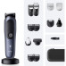 Тример для бороди, волосся на голові, носа і вух, для тіла. Autosensing motor. Два регульованих гребня (на 3-11 мм і на 13-21 мм). Дві насадки на 1 і 2 мм. Додаткове змінне лезо для деталізації. Насадки-гребні для фейдінга (1-5 мм та 5-1 мм). Насадка-бритва. Насадка для носа і вух. Насадка для брів. Додаткове змінне лезо для тіла. Насадка для чутливих ділянок тіла. Тример оснащений 14-ма параметрами довжини з кроком 2 мм. Живлення: від Li-ion акумулятора. Час роботи від акумулятора 120 хв. Час зарядки 90 хв. LED індикатор стану акумулятора. Швидка зарядка за 5 хв. Зарядний пристрій адаптується під напругу мережі будь-якої країни світу. Самозаточуючі ножі з необмеженим терміном служби. Підставка-зарядка. Чоловіча косметичка. Щіточка для чищення.