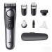 Дорожній футляр. Трафарет для бороди. Два регульовані гребені (на 0,5-10 мм і на 10,5-20 мм). Насадка точковий тример (Detail Pro head). Насадка бритва (Wide Foil Shaver). Зарядний пристрій адаптується під напругу будь-якої країни світу (в діапазоні 100-240V). Щіточка для чищення.