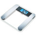 Велика опорна поверхня зі скла товщиною 8 мм. Дуже великий дисплей з синім підсвічуванням. Вага, жирова і кісткова маса, частка вологи і м'язової тканини. Електроди з полірованої нержавіючої сталі. П'ять рівнів активності. Технологія включення Quick Start. Автоматичне вимикання, індикація перевантаження. Максимальна вага 180 кг. Розмір цифр 40 мм.