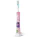 Philips HX6352/42 відноситься до звукових щіток з вібруючою головкою. Її корпус виготовлений з міцного якісного пластика, абсолютно безпечного для дитячого здоров'я. Щетинки робочої головки мають оптимальну жорсткість і закруглену форму, щоб не допускати травмування ясен під час чищення. Ергономічна ручка щітки забезпечує впевнений захват, щоб дитина могла почистити зуби без допомоги дорослих. Головка змінної насадки спеціально прогумована для безпечного чищення дитячих зубів.