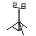 Прожектор Neo Tools, алюміній, 220 В, 2х30Вт, 5400 люмен, SMD LED, кабель 3 м з вилкою, IP65, на штативі 1.8 м. Рефлектор подвійний на штативі SMD NEO, використовується для внутрішнього та зовнішнього освітлення. Складається із двох ламп, кожна потужністю 30 Вт. Насамперед для використання під час ремонтних та будівельних робіт, коли важлива хороша видимість та відсутні інші джерела світла. Також знадобиться у майстерні, фотостудії, на горищі або у підвалі. Рефлектор може бути корисний зовні для освітлення проїздів, терас або входу в будинок. Що важливо, рефлектор розміщується на телескопічній тринозі. Максимальна висота штатива 180 см. Кут світлового променя досягає 120°. Ви можете встановити напрямок освітлення. Пристрій має міцну конструкцію, оскільки світлодіодний діод поміщений у алюмінієвий плафон за склом. Ступінь захисту корпусу IP65 означає, що він пило-і водонепроникний. Рефлектор має шнур завдовжки 3 метри з вилкою.