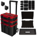 Einhell E-Case Tower є частиною модульної системи Einhell E-Case і чудово підходить для зберігання та транспортування інструментів, аксесуарів та іншого обладнання. E-Case Tower складається з трьох кейсів: E-Case L містить знімну вставку для ручних інструментів, один із двох кейсів E-Case S поставляється з двома поролоновими вставками для безпечного транспортування без подряпин, а інший містить пластикові відсіки для впорядкованого транспортування дрібних деталей та аксесуарів. Практична система замків для з'єднання складених ящиків забезпечує систематичний порядок при зберіганні та забезпечує безпечне транспортування. Корпуси виготовлені з міцного поліпропілену, що надає їм високу жорсткість, термостійкість та міцність. Міцна конструкція дозволяє витримувати загальне навантаження до 120 кг. Інструменти можна легко транспортувати, не в останню чергу завдяки широкій телескопічній ручці та великим прогумованим колесам Ø 15 см, які забезпечують комфортне транспортування по будь-якій поверхні. Завдяки продуманій конструкції кейс захищений від бризок і його можна транспортувати за будь-якої погоди. Складна ергономічна ручка забезпечує оптимальний комфорт при носінні, наприклад коли виймаєте його з багажника автомобіля. Кейси E-Case можуть бути обладнані підвісними замками для захисту їх від крадіжки. У комплекті також є три наклейки для маркування, тому ви завжди будете знати, що зберігається в кожній коробці.
