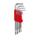 Опис Набір ключів Г-подібних шестигранних подовжених, з кулястим наконечником, 9 шт., 1,5-10 мм, Cr-V