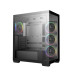 CG580 4F V2 виділяється встановленою системою охолодження, що складається з трьох реверсивних ARGB-вентиляторів з ШІМ збоку та одного стандартного ARGB-вентилятора з ШІМ на задній стороні. Ця конфігурація формує оптимальний повітряний потік для ефективнішого відведення тепла. Узгоджене ARGB-підсвічування на рамках та кільцях вентиляторів підтримує синхронізацію з материнською платою, що дозволяє створити єдиний динамічний візуальний ефект.