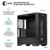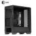Міцна основа корпусу виготовлена з металу товщиною 0,7 мм із повністю чорним покриттям, що гарантує надійність конструкції. Фронтальна панель виконана з ABS-пластику з металевою сіткою для ефективного повітряного потоку. Ліва бокова панель із загартованого скла з чорною рамкою та кріпленням на два гвинти, права — металева, що поєднує естетику та практичність.