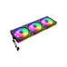 Три повнофункціональні вентилятори 120 мм ARGB PWM. Інтелектуальна температура контролює швидкість на рівні 800~1600±10% обертів за хвилину, підключаючись до 4-контактного роз’єму PWM на материнській платі, тому швидкість вентилятора автоматично контролюється та забезпечує тиху роботу вентиляторів.