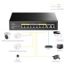 PoE-комутатор має 10 портів, з них 8 портів PoE+ 10/100/1000M, 2 порти Uplink 1000M.