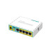 MikroTik hEX PoE lite — це невеликий п'ятипортовий Ethernet-маршрутизатор у пластиковому корпусі, що має порт USB 2.0 і вихід PoE.