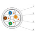 Ізоляція: поліетилен. Діаметр провідника: 1,07 мм. Пара: 2 скручених разом провідника. Колірна ідентифікація жил: пара 1: біло-синя / синя пара 2: біло-помаранчева / помаранчева пара 3: біло-зелена / зелена пара 4: біло-коричнева / коричнева. Сердечник: 4 пари скручені разом.