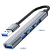 - Plug&Play. Пристрій не потребує встановлення драйверів для роботи та під'єднання. Матеріал: алюмінієвий сплав, хаб не перегрівається і має великий запас міцності.