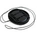 Захисна кришка об'єктива універсальна і підходить для стандартного об'єктива, універсального об'єктиву, телеоб'єктива, ширококутний об'єктив. Зручна конструкція пружинних внутрішніх затискачів дозволяє надійно встановити кришку в передню частину об'єктива або в різьбу для установки світлофільтрів. Таким чином, різьблення на затискачах кришки увійде в зачеплення з різьбленням на об'єктиві (світофільтрі) і кришка надійно зафіксується. Кріплення до фотоапарата: (нейлоновий шнурок, 30 см).