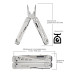 Інструменти в комплектіПлоскогубці; Кусачки; Пила; Ніж; Ножиці; Напилок; Консервний ніж; Відкривачка для пляшок; Викрутка хрестова; Викрутка плоска мала; обценьки; викрутка плоска велика; серейторний клинок; Шило - кернер; паз для зняття ізоляції; інструмент для відкривання посилок