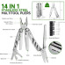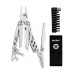 - 14 функцій на будь-який випадок. Мультитул укомплектований ножем з прямим заточуванням, ножицями, хрестовою та плоскою викрутками, відкривачками для пляшок та консервних банок, серейторною пилою, напилком по дереву та металу, плоскогубцями та кусачками. Також є тримач для біт та повноцінний комплект з 9 змінних біт для різних завдань.