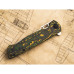 Карбонове руків'я ексклюзивного EDC-ножа виконану у камуфляжному забарвленні (Toxic Storm/Fatcarbon Materials), яке повністю відповідає кольоровій гамі та малюнку ME 109. Замкова сторона інструменту (фреймлок) зроблена з цільного шматка титану та оснащена сталевою запірною вставкою, а міцна кліпса (праворуч/вістрям догори) - зробить носіння ножа зручним і непомітним для оточуючих.