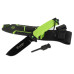 - є компактне кресало, стропоріз і точилка, які вбудовані в піхви;