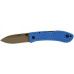 Багатофункціональний дроп-пойнт клинок із практичної вуглецевої D2-сталі з “бронзовим” фінішуванням поверхні;
