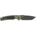Оснащений агресивним танто-клинком із преміальної M4-сталі з чорною кракелюр-обробкою поверхні та гладкою кромкою;