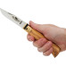 Серія Classic стала першою серією ножів під брендом Old Bear, що був створений на честь 90-річчя материнської компанії Antonini Knives. Серія характеризується простими та ергономічними формами і створена із застосуванням традиційних технологій виробництва з високим рівнем ручної праці майстрів бренду.Клинок профілю Clip Point виготовляється з нержавіючої сталі Aisi 420 або вуглецевої сталі C70, залежно від моделі. Ці типи сталі ідеально підходять для такого типу ножів та легко правляться навіть в польових умовах. В робоче положення клинок приводиться нігтьовою виїмкою та фіксується поворотом спеціального кільця в передній частині руків'я. Сам виробник називаю цю систему “Brass with locking”, що є похідним від замку Virobloc. Відкритий осьовий гвинт під 8 Torx зручно регулюється комплектним ключем. На клинок нанесено витравлений сіллю логотип “Old Bear”.Просте, проте ергономічне руків'я виробляється з таких порід деревини як горіх та оливкове дерево. Через те, що обробка проходить вручну, загальний тон руків'я кожного окремого екземпляру може відрізнятись від фото представлених на сайті.Серія Classic поставляється в п'яти різних розмірах: XS, S, M, L та XL. Завдяки цьому ви зможете обрати ніж, який підійде саме для вашої руки та буде довго служити вам під час походів та інших аутдор активностей.