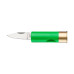 Cartridge Knife - це кишеньковий ніж, що виглядає як автентична гільза від дробовика 12-го калібру. Руків'я-корпус виготовлено з кольорового пластику (доступний в 5 кольорах: синій, жовтий, чорний, червоний і зелений), а невеликий клинок з нержавіючої сталі Aisi 420. Даний клинок хоч і не великий, але допоможе у розрізанні різноманітних пакувань, коробок, конвертів та навіть підійде для нарізання невеликих продуктів. В робоче положення клинок приводиться нігтьовою виїмкою та має механізм фіксації Slip Joint. Bullet Knife це гарний аксесуар на EDC, а також приємний подарунок фанатам аутдору, мисливцям та стрільцям.