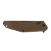 Загальна довжина ножа складає 219 міліметрів, товщина три з половиною міліметри. Вага 120 грам. Основою накладки для рукояті послужив сучасний, надміцний композитний матеріал G10. Це не що інше, як склотканина, поєднана з епоксидними смолами. В результаті утворюється з'єднання, яке чудово проявляє себе при практичному застосуванні: витримує високі температури, удари, вологу, фарбування. Металева основа рукоятки зроблено зі сталі марки 420. Є знімна сталева кліпса і отвір під темляк. Готовий виріб набуває такі риси, як міцність, довговічність, стійкість до пошкоджень. Клинок з ножа витягується за допомогою фліпера і фіксується сталевим замком типу Frame-Lock. За швидкість вилучення відповідає осьовий роликовий підшипник.