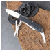 Основне лезо та інші інструменти виробляються зі шведської сталі 12С27. Даний метал популярний серед виробників ножів, так як вважається високоміцним і може витримувати високі навантаження. Крім того, у нього відмінний опір корозії – іржа не залишається на ножі навіть тоді, коли його довго використовували в умовах високої вологості. Твердість у сталі становить аж 59HRC, а тому ножі дуже довго не тупляться і правляться звичайної кишенькової стругачкою. Утримується клинок замком типу Liner.