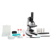 мікроскоп; пінцет; чашка Петрі; скальпель; мірна колба; шило; запасна лампочка; 2 контейнери для препаратів; 5 підготовлених слайдів; 7 етикеток; 7 покривних скел; 7 предметних скел; еозин (червоний барвник); кольорові фільтри (4 шт. під предметним столиком мікроскопа); контейнер для артемій; яйця артемії; морська сіль; gum media для склеювання скел