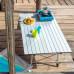 Стільниця має достатні розміри, щоб за столом комфортно розмістилися 6 людей. У складеному вигляді стіл компактно розміщується в чохлі. Алюмінієва поверхня стільниці легко чиститься, і є максимально гігієнічною, оскільки алюміній не формує середовище для розмноження мікробів.