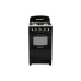 Плита виконана у чорному емальованому корпусі. На передній панелі розташовані перемикачі регулювання потужності полум'я пальників робочої поверхні та духовки.