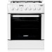 Плита з комбінованою варильною поверхнею, 3 газові і 1 електрична конфорки, електрична духовка об'ємом 65 л, з грилем, 4 режими духовки, електрозапалювання конфорок кнопкою, газ-контроль конфорок, механічний таймер, термостат 50-300 С, ширина 60 см, колір білий