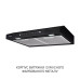 Корпус виготовлений із фарбованого металу чорного кольору, що надає витяжці стриманого та сучасного вигляду. Декоративна панель із загартованого скла підкреслює преміальний характер моделі. Плоска форма дозволяє компактно інтегрувати витяжку в кухонний простір. Матеріали стійкі до температурних навантажень і зберігають зовнішній вигляд протягом тривалого часу.